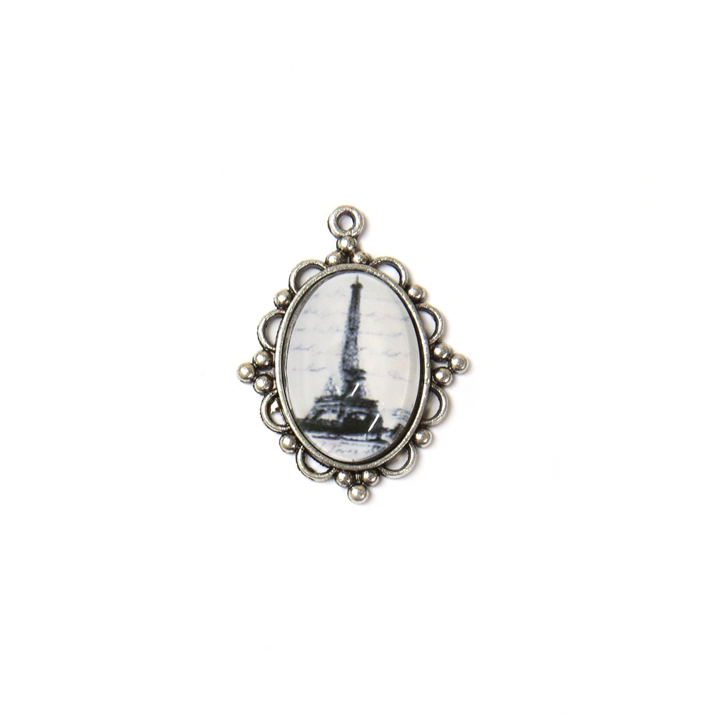 Eiffel Tower Cabochon Charm, Antique Silver, 38x29mm - 1 piece